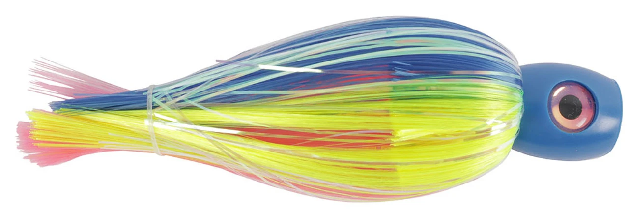 Blue Water Candy’s Scooter Chugger Heads are very effective on dolphin and billfish. They are tied on a lightweight plastic cup-faced head with decal eyes. The Scooters are tied with synthetic hair and mylar, in some of the most popular offshore color patterns that are sure to add some strikes to your day of fishing. These chugger head skirts can be used in front of a ballyhoo or natural bait, and is especially effective at the end of a daisy chain.