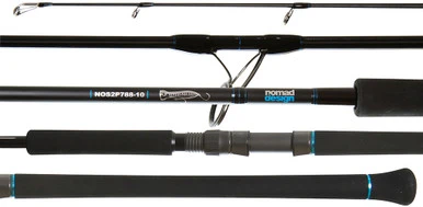 Brought to you by the leading innovators in offshore lure design, the Nomad Design Offshore Spinning Rods are the ultimate weapon for going toe-to-toe with the ocean’s apex predators. This powerful series of offshore popping rods was born from decades of research and development in one of the toughest fishing arenas on the planet – Australia?s Great Barrier Reef. Featuring a unique Helix30T45 blank construction method, the blanks are specially tapered with increased casting distance and efficient working of lures in mind. The Helix30T45 blank utilizes the latest Japanese 30 Tonne Toray Carbon with a 45 degree carbon wrapping. This process achieves increased sensitivity, strength and blank responsiveness, giving the angler a better fishing experience and the rod a longer lifespan. Despite their lightweight and comfortable feel, anglers can expect Nomad’s new popping rod to have more than enough power and back bone to take down the mightiest beasts, from tuna to giant trevally and more. Fitted with only high quality components, these advanced blanks are equipped with state-of-the-art Fuji SiC K guides for smooth casts and maximum durability, along with an ultra-strong Fuji GM reel seat.