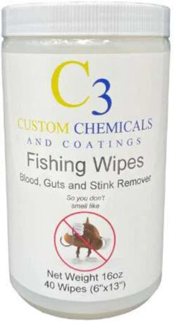 The Salts Gone Fishing Wipes removes blood, guts and stink from your hands and boat. They are also great for cleaning coolers and anything else that ges covered in fish. Each wipes measures 6 in. x 13 in. 40 wipes per canister.